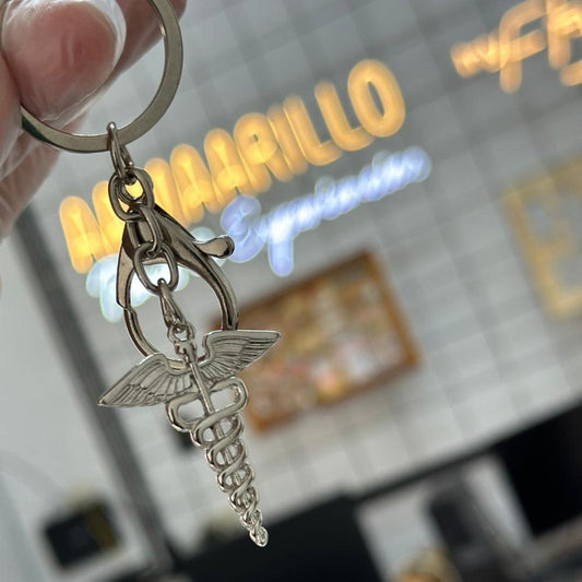Llavero esculapio plateado