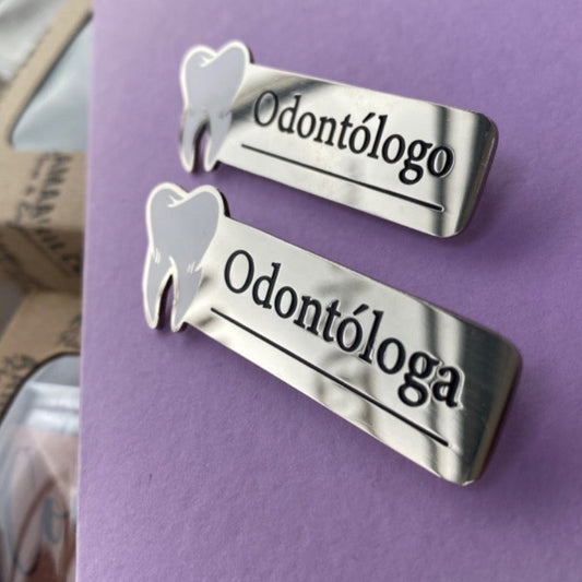 Escarapela odontóloga - Grabado sobre metal (plateado)