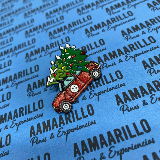 Pin carro vinotinto con árbol de navidad